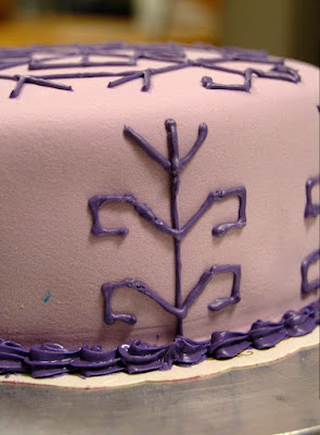Alkuperäinen ajatukseni marsipaaniin leivinpaperin läpi jäljennetyistä kuvioista ei toiminutkaan, kuten olin toivonut, joten päädyin spritsaamaan kaiken vapaalla kädellä.